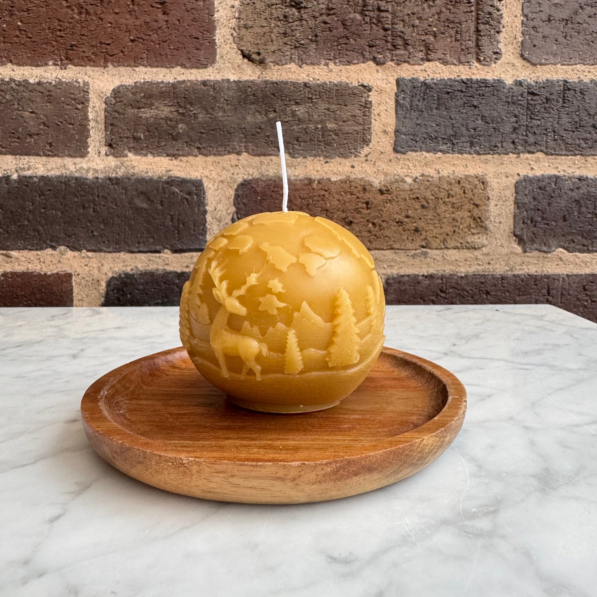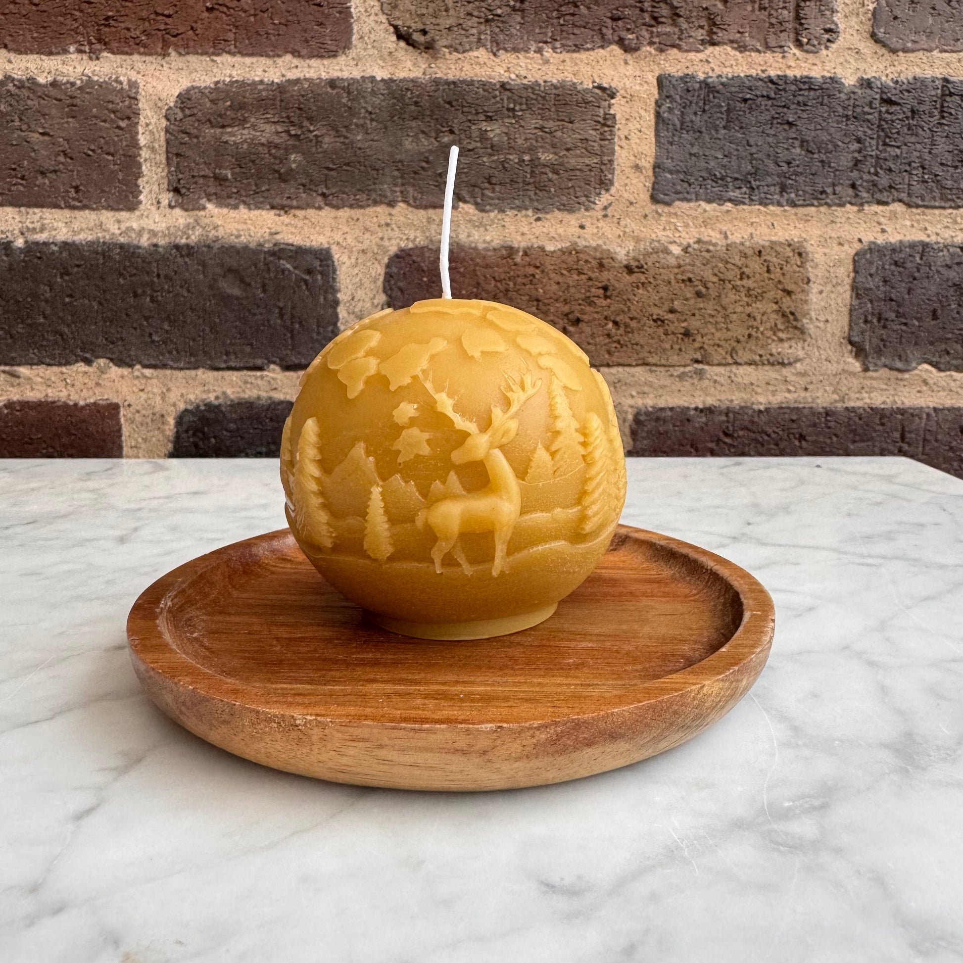 Hand-Poured 100% Natural Beeswax Candle – Stag Forest Scene Bring the beauty of nature into your home with this exquisite beeswax candle. Featuring a detailed 360° forest scene, this candle showcases a majestic stag surrounded by woodland trees, evoking the tranquility and charm of Cannock Chase in Staffordshire.
